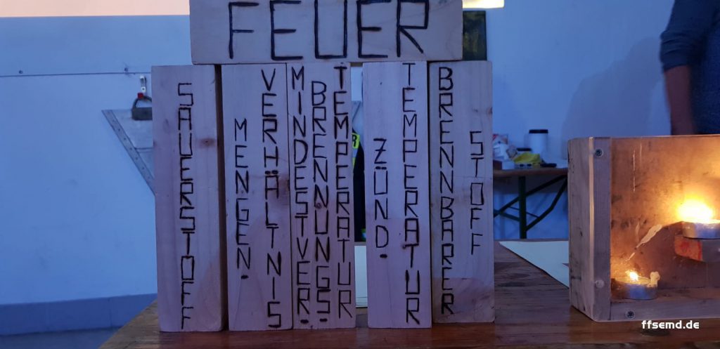 Im gestrigen Übungsabend ging es mal wieder zurück zu den Grundlagen. Auf dem Programm stand ein Experimentalvortrag Brennen und Löschen. Mit verschiedenen kleinen und großen Experimenten wurden die Gefahren und Löschmethoden dargestellt. Das übertragen der Theorie in die Praxis, erwies sich an einigen Stellen als relativ schwierig bis unmöglich, dies sorgte für eine lockere und lustige Atmosphäre.