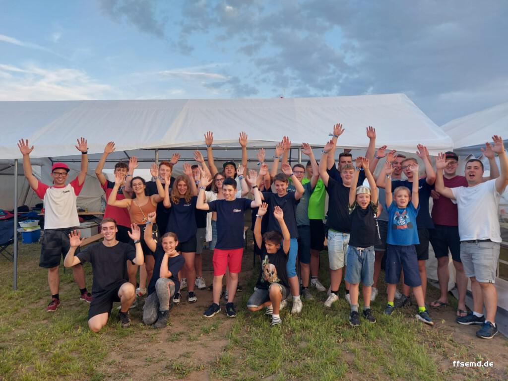 Nach zwei Jahren Corona-bedingter Pause endlich wieder ein Kreisjugendfeuerwehrtag mit Zeltlager! So hieß es für die Jugendlichen Zeugnisse in der Schule abholen, Schlafutensilien packen und auf gehts zur Jugendfeuerwehr. Nach dem Einrichten des Schlafplatzes, im schon am Vortag aufgebauten Zelt, startete das dreitägige Programm. Neben diversen Möglichkeiten auf dem Zeltplatz, beteiligten sich auch immer alle an der Essensversorgung und dem anschließenden Abwasch. Im Anschluss an die offizielle Eröffnung, ließ man den Abend gemütlich am Zelt ausklingen. Der Samstag stand im Zeichen der Leistungsspangenabnahme, der höchsten Auszeichnung der Jugendfeuerwehr. Nachdem wir im letzten Jahr mit einer eigenen Mannschaft im Landkreis Bergstraße antraten, waren wir in diesem Jahr Teil einer gemischten städtischen Mannschaft. Für alle die nicht an der LSP teilnahmen, gabs weitere Angebote wie Turniere oder Challenges am Zeltplatz. Ein Ausflug aller Jugendlichen und des Betreuerteams ins Griesheimer Freibad sorgte für Abkühlung. Nach der Übergabe der LSP stand der Samstagabend ganz in Feierlaune, bevor Sonntagmorgen schon wieder die beiden Schlafzelte und das Küchenzelt abgeschlagen wurden. Ausrichter war in diesem Jahr die Feuerwehr Griesheim – Danke dafür!