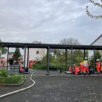 Heute folgten wir der Einladung der Freiwilligen Feuerwehr Dieburg zu einer Gemeinschaftsübung. An Fastnacht und bei Unwettern kommen wir regelmäßig in der Nachbarkommune zusammen. Vorbereitet wurde ein Brandeinsatz in der Berliner Straße 37, besser bekannt als St. Wolfgang Pfarrei. Da sich die FF Dieburg zu Übungsbeginn bei einem realen Verkehrsunfall im Einsatz befand, schickte man uns zunächst zum Erstangriff voraus. Im Übungsverlauf retteten wir in kurzer Zeit 9 Personen unter Atemschutz. Da das Szenario für zwei Löschzüge angesetzt war, hatten wir alle Hände voll zu tun. Gerettete Personen übergaben wir im Außenbereich an die Johanniter Unfallhilfe OV Dieburg, welche die weitere Versorgung übernahm. Die FF Dieburg trafen wir erst im Keller zum kalten Getränk und Austausch nach der Übung. Dennoch vielen Dank für die Ausrichtung!