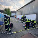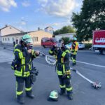 Gestern Abend erfolgte endlich mal wieder eine Gemeinschaftsübung mit und in Klein-Zimmern. Beim Übungsszenario war ein Werkstattbrand mit vermissten Personen angenommen worden. Zum Einsatz aller Kräfte erfolgte die Wasserförderung aus der nahegelegenen Bach. Außerdem spielte man seitens Übungsleitung einen Atemschutznotfall ein. Im Anschluss fanden wir uns sehr gerne zu Gesprächen und gegrillter Bratwurst auf der Dachterrasse der Feuerwehr ein. Vielen Dank für die Ausrichtung, wir revanchieren uns gerne!