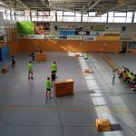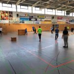 Beim diesjährigen Frühjahrsturnier des Bezirks II wurde Völkerball verkehrt herum gespielt, dass bedeutet auf dem Spielfeld befindet sich jeweils nur ein Spieler. Alle anderen Spieler stehen um das Spielfeld herum und müssen sich in das Spiel hineinwerfen. Gewonnen hat die Mannschaft die zuerst alle Spieler auf dem Spielfeld hat. Nach vielen interessanten Spielen belegten wir den 5. Platz.