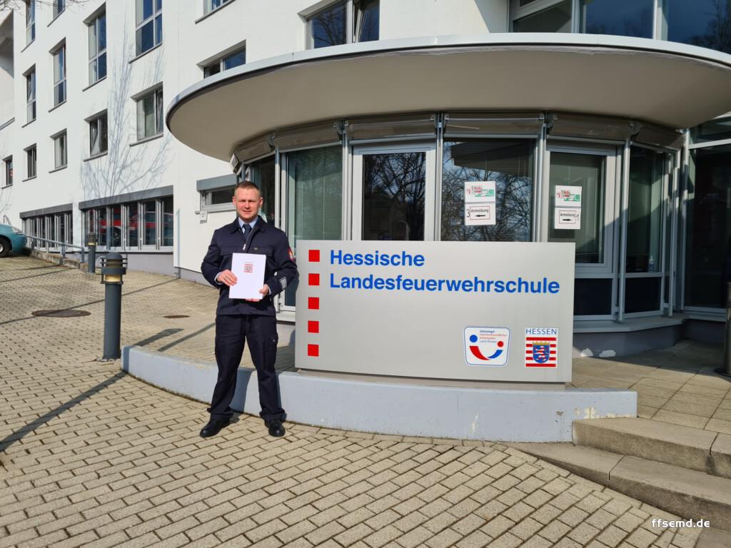 Wir gratulieren unserem Kameraden Christopher (1998 – 2002 Jugendfeuerwehr, seit 2002 Einsatzabteilung, inklusive mehrerer Jahre als Vorsitzender und stv. Vorsitzender des Vereins), der Ende März den Brandinspektorlehrgang für Berufsfeuerwehren (B-IV), mit Erfolg abgelegt hat! Damit tritt Christopher in den gehobenen Dienst der Berufsfeuerwehr ein. Im Einsatzdienst in Semd wird er ebenfalls nach wie vor Führungsfunktionen ausüben. Für die neuen Aufgaben wünschen wir ein glückliches Händchen.