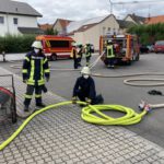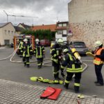 Wie geht es weiter? Am 6. Juli üben die Gruppen A und B zusammen, am 13. Juli C und D. In der Sommerpause bieten wir zwei alternative Belastungsübungen für die Atemschutzgeräteträger und Termine zur Maschinistenfortbildung an. Nach den Sommerferien möchten wir dann, sofern es die Pandemie zulässt, wieder dienstplanmäßig in Zugstärke üben.