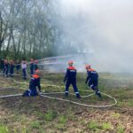 Bei bombastischem Sommerwetter startete am 14. Mai die langersehnte 24-Stunden-Übung der Jugendfeuerwehren im Stadtgebiet Groß-Umstadt. Zum Auftakt ertönte der Alarmgong der Semder Wache bereits um 13:28 Uhr, also kurz nach Dienstaufnahme. Am Frauengraben wurde eine Person aus einer Grube gerettet. Nach einer ausgiebigen Wasserschlacht auf dem Feuerwehrplatz sollte um 16:12 Uhr ein Flächenbrand bei Richen folgen. Dieser stellte sich als brennende Strohballen heraus, welche zusammen mit den Jugendfeuerwehren Richen und Kleestadt gelöscht wurden. Zum Abendessen gab es leckere Burger, doch diese mussten wegen eines Brandmeldealarms an der Semder Sporthalle auf sich warten lassen. Ab 20 Uhr erfolgte die Jahreshauptversammlung der Stadtjugendfeuerwehr als Videokonferenz mit allen 9 Stadtteilwehren. Gegen halb elf ging es für die Semder Nachwuchsretter zusammen mit den Kräften aus Kleestadt und Klein-Umstadt zu einer brennenden Scheune am Birkenhof. Noch vor dem Frühstück ertönte um 07:21 Uhr abermals der Alarmgong, welcher erneut eine ausgelöste Brandmeldeanlage vermuten ließ, doch diesmal brannte es wirklich. Die Abschlussübung erfolgte mit den Jugendfeuerwehren Umstadt, Klein-Umstadt, Raibach und Wiebelsbach an der Waschanlage Waschkonzept. Die weiteren Jugendfeuerwehren hatten ihre Abschlussübung an der Ernst-Reuter-Schule. Nach dem Reinigungsdienst an Fahrzeugen und Feuerwehrhaus endete die groß angelegte Aktion der 15 Jugendlichen und 8 Betreuer mit müden, aber glücklichen Gesichtern.