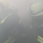 Zu einem F1 unklare Rauchentwicklung aus Garten ging es für die Semder Feuerwehr am Dienstagabend. Hinter diesem Meldebild kann sich alles verbergen. Der ersteintreffende Fahrzeugführer wurde jedenfalls direkt von einem aufgebrachten Hausbewohner empfangen. Es habe einen Knall im Anbau gegeben und er vermisse Frau und Kind. Sofort veranlasste der Fahrzeugführer die Alarmstufenerhöhung auf F2Y, also einem Brand in Wohngebäuden mit Menschenleben in Gefahr. Zeitgleich wurden Menschenrettung und Brandbekämpfung unter schwerem Atemschutz eingeleitet. Die drei eingesetzten Trupps im Innenangriff konnten die vermissten Personen trotz sehr schlechter Sicht vor den Belüftungsmaßnahmen schnell ausfindig machen. Zum Glück alles nur eine dienstplanmäßige Übung, aber definitiv nicht unrealistisch!