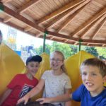 Die Lochmühle bietet viele kindgerechte Attraktionen an. Zu Beginn waren wir kurz im Indoor-Bereich. Hier gibt es alles was Kinderherzen bei Regen schneller schlagen lässt. Im Eingangsbereich starteten wir direkt mit dem Freefall-Tower, dem Kettenkarussell, den Adlern (eine Art Schiffschaukel) und fuhren mit den roten und gelben Hubschraubern über der Lochmühle. Die meistgenutzten Attraktionen unserer Löschdrachen waren die große Teppichrutsche und die Eichhörnchenbahn – eine Achterbahn. Zwischendurch stärkten wir uns mit Pommes und Nuggets oder mit Spaghetti und Tomatensoße und einer kühlen Caprisonne. Auch der Streichelzoo und die Traktorrunde mit bewirtschafteten Mini-Feldern wurden genutzt. Bevor wir die Heimreise antraten hüpften wir auf dem großen Luftkissen, versuchten uns als Goldgräber und fuhren nochmal schnell die Eselbahn.