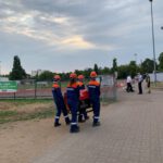 Nach zwei Jahren Corona-bedingter Pause endlich wieder ein Kreisjugendfeuerwehrtag mit Zeltlager! So hieß es für die Jugendlichen Zeugnisse in der Schule abholen, Schlafutensilien packen und auf gehts zur Jugendfeuerwehr. Nach dem Einrichten des Schlafplatzes, im schon am Vortag aufgebauten Zelt, startete das dreitägige Programm. Neben diversen Möglichkeiten auf dem Zeltplatz, beteiligten sich auch immer alle an der Essensversorgung und dem anschließenden Abwasch. Im Anschluss an die offizielle Eröffnung, ließ man den Abend gemütlich am Zelt ausklingen. Der Samstag stand im Zeichen der Leistungsspangenabnahme, der höchsten Auszeichnung der Jugendfeuerwehr. Nachdem wir im letzten Jahr mit einer eigenen Mannschaft im Landkreis Bergstraße antraten, waren wir in diesem Jahr Teil einer gemischten städtischen Mannschaft. Für alle die nicht an der LSP teilnahmen, gabs weitere Angebote wie Turniere oder Challenges am Zeltplatz. Ein Ausflug aller Jugendlichen und des Betreuerteams ins Griesheimer Freibad sorgte für Abkühlung. Nach der Übergabe der LSP stand der Samstagabend ganz in Feierlaune, bevor Sonntagmorgen schon wieder die beiden Schlafzelte und das Küchenzelt abgeschlagen wurden. Ausrichter war in diesem Jahr die Feuerwehr Griesheim – Danke dafür!