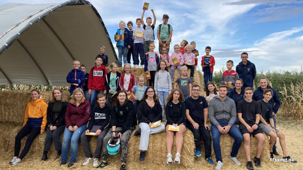 Heute sind die Semmer Löschdrachen, also die Kinderfeuerwehr, zusammen mit der Jugendfeuerwehr im Maislabyrinth beim Erdbeerhof Münch in Groß-Umstadt. Hier gilt es in zwei Labyrinthen, ein kleines und ein weitläufigeres, je 5 Stempelstationen zu finden. Die Jugendfeuerwehr, welche mit dem Rad anreiste, bildete vor Ort gemischte Gruppen zusammen mit den Löschdrachen und man begab sich auf die Suche.