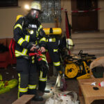 Die Kräfte wurden von beißendem Rauch und zahlreichen Verletzten empfangen. Schnell stellte sich heraus, dass es zu einer Explosion gekommen sein muss und dass weitere Personen im Gebäude und den Trümmern vermisst werden. Umgehend wurde die Rettung unter schwerem Atemschutz und teils mit hydraulischen Rettungsgeräten eingeleitet. Aufgrund begrenzter Rettungsmittel packten zunächst Feuerwehr und Rettungsdienst gemeinsam bei der Betreuung und Versorgung der Verletzten an, denn das Retten hat auch bei der Feuerwehr oberste Priorität. Nach dem Absuchen der betroffenen Gebäude und der Meldung Feuer aus fand die groß angelegte Gemeinschaftsübung, welche von 2 Semder Aktiven geplant wurde, ihren Abschluss. Im Nachgang zu Getränken und Imbiss im Semder Feuerwehrhaus folgte eine sachliche Übungsnachbesprechung aller Führungskräfte. Man war sich einig, guter Verlauf einer zunächst sehr unübersichtlichen Lage, aber dennoch für alle Teilnehmer lehrreich.