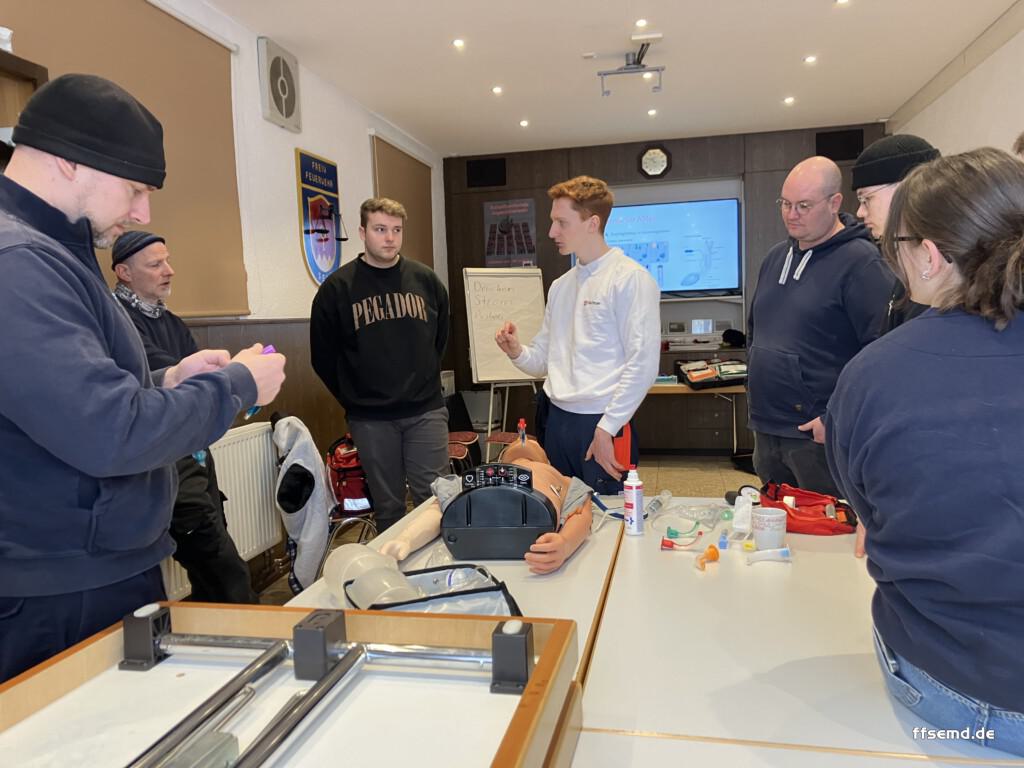 Semd verfügt mit vier benachbarten Rettungswachen in Groß-Umstadt und Dieburg, zwei davon mit Notarzteinsatzfahrzeug, über eine optimale medizinische Abdeckung. Dennoch kommt die Feuerwehr immer wieder in die Situation, unterstützend tätig zu werden. Demnach führen wir alle zwei Jahre einen Erste Hilfe Kurs zur Auffrischung durch. Darüber hinaus verfügt unsere Einsatzabteilung über Personal mit Sanitäts- oder auch Rettungsdienstausbildung. Am Samstag trafen sich unsere Feuerwehrsanitäter und weitere Interessierte zur Sanitätsfortbildung. Sven Kaiser, beruflich im Rettungsdienst der Malteser und ehrenamtliche Einsatzkraft der FF Semd, führte durch ein buntes Programm mit Schwerpunkt Reanimation. Vor einigen Jahren betrieb das DRK Groß-Umstadt ein Voraus-Helfer System, zur Verkürzung des therapiefreien Intervalls, in Semd. Dieses wurde jedoch beim Zuwachs an Rettungswachen, in unmittelbarer Nähe zum Ort, eingestellt.