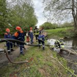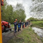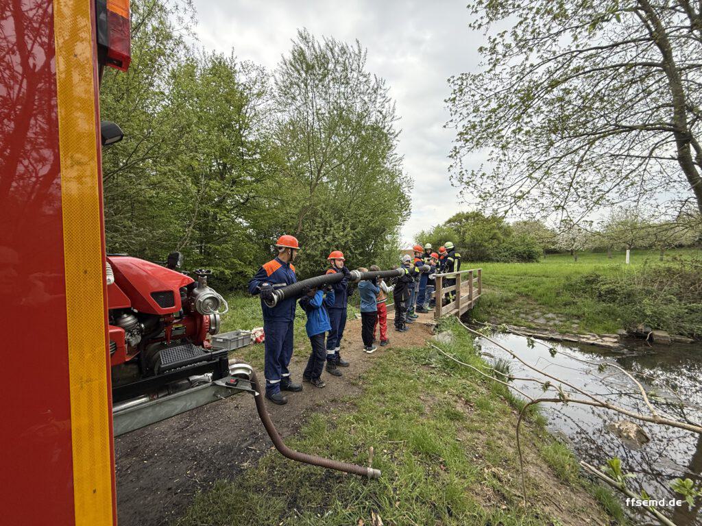 Am Freitagabend trafen sich die Jugendfeuerwehr und die Kinderfeuerwehr Semd zu gemeinsamen Übungen. Die Kinder und Jugendlichen wurden in gemischte Gruppen eingeteilt, wobei die älteren Teilnehmer die jüngeren anleiteten und unterstützten. Während an der Taubensemd die Wasserentnahme aus einem offenen Gewässer geübt wurde, fand zeitgleich an der Sporthalle ein Löschangriff auf Zeit statt. Ziel war es, mit dem Wasserstrahl Fallklappen gezielt umzustoßen. Die Übungen boten eine ideale Gelegenheit, das Zusammenspiel beider Gruppen zu fördern und die Begeisterung für die Feuerwehrarbeit weiterzugeben.