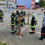 Nach dem erfolgreichen Sieg beim Kreisentscheid am 24. Mai in Münster war die Motivation entsprechend hoch. Vor Ort galt es zunächst, theoretische Fragen zu beantworten, bevor im Anschluss die praktische Übung unter den strengen Augen der Wertungsrichter absolviert wurde.