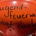Zum Abschluss der Versammlung wurde dem scheidenden Wehrführer André Kinz für seine langjährige Unterstützung der Jugendfeuerwehr gedankt. Als Zeichen der Anerkennung überreichte die Jugendfeuerwehr einen Jugendfeuerwehrhelm, versehen mit den Unterschriften der Jugendlichen und Betreuer.