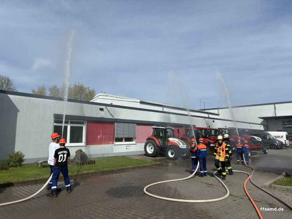 Pünktlich um 13:00 Uhr begann der Dienst, ehe bereits um 13:05 Uhr ein erster Probealarm die Jugendlichen auf Betriebstemperatur brachte. Nur wenig später folgte um 13:28 Uhr der erste „echte“ Einsatz: Ein simulierter Gebäudebrand in der Otzbergstraße bildete den Auftakt eines abwechslungsreichen und fordernden Tages.