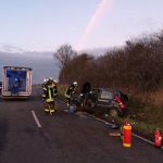 Auf der Landstraße zwischen Richen und Altheim hat sich ein Pkw überschlagen. Die Feuerwehr übernahm die Verletztenbetreuung bis zum Eintreffen des Rettungsdienstes, sicherte die Einsatzstelle ab, stellte den Brandschutz sicher, klemmte die Batterie ab und reinigte die Fahrbahn. Für die Dauer des Einsatzes war die Straße voll gesperrt.