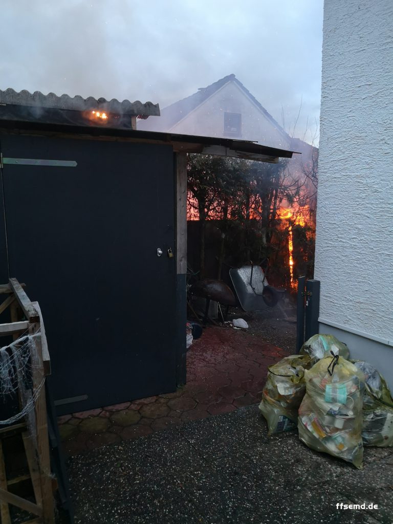 Am Montag (03.02) wurde um kurz nach 17.00 Uhr durch mehrere aufmerksame Anwohner der Brand eines Holzunterstandes in der Eisenacherstraße gemeldet. Ein 29-jähriger Nachbar, welcher versuchte ein Übergreifen der Flammen auf benachbarte Gärten und Häuser zu verhindern, wurde dabei leicht verletzt und musste in einem umliegenden Krankenhaus behandelt werden. Zur Brandbekämpfung waren die Freiwilligen Feuerwehren aus Groß-Umstadt, Richen und Semd im Einsatz. Der Sachschaden wird auf mehrere tausend Euro geschätzt. Die Brandursache ist derzeit nicht geklärt. Die Kriminalpolizei in Darmstadt hat die Ermittlungen aufgenommen.
