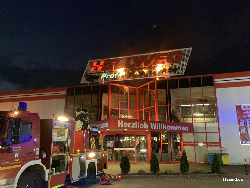 Eine brennende Lichtwerbung beschäftigte die Freiwilligen Feuerwehren aus Umstadt und Semd in den Morgenstunden. Die Feuerwehr schaltete den Strom ab, löschte den Brand unter Atemschutz über die Drehleiter und kontrollierte den verrauchten Innenbereich mit der Wärmebildkamera. Ein Übergreifen des Feuers auf den Innenbereich konnte glücklicherweise verhindert werden.
