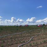 Das ersteintreffende Fahrzeug der Feuerwehr konnte die Lage vor Ort bestätigen und veranlasste die sofortige Nachalarmierung des 10. LZ zur Wasserförderung lange Wegstrecke, wegen Funkenflug und zum Aufbau einer Riegelstellung. Die Besatzung vom Semder TSF-W schaffte es mittels Waldbrand-Set die Ausbreitung des Feuers auf zahlreiche weitere Rundballen zu verhindern. Im weiteren Verlauf konnte ein Feldbrunnen des Erdbeerhof Münch in Betrieb genommen werden, sodass die errichtete Schlauchleitung, des Gerätewagens aus Wiebelsbach, vom Semder Ortsrand zur Einsatzstelle trocken bleiben und als Sicherheit dienen konnte, falls die genutzte Quelle versiegt. Zum Erhalt der angrenzenden Rundballen wurden sie vom Landwirt Münch in Sicherheit gebracht. Mit dem Monitor des Umstädter Tanklöschfahrzeuges unterband man bestmöglich den Funkenflug. Um den Verbrennungsvorgang des Strohs zu beschleunigen, fragte die Einsatzleitung einen Radlader beim THW OV Groß-Umstadt an. Diese entsendeten widerum den Radlader aus Bensheim, mit welchem das Stroh auseinandergezogen wurde. Die Feuerwehren Richen und Umstadt schützten den eingesetzten Radlader mit ihren Strahlrohren und zogen das Stroh weiter auseinander. Zu guter Letzt wurde die betroffene Stelle vom Landwirt gegrubbert. Der DRK OV Groß-Umstadt löste den Regel-Rettungsdienst ab und stand über den gesamten Einsatz für die Sicherheit der Einsatzkräfte bereit.
