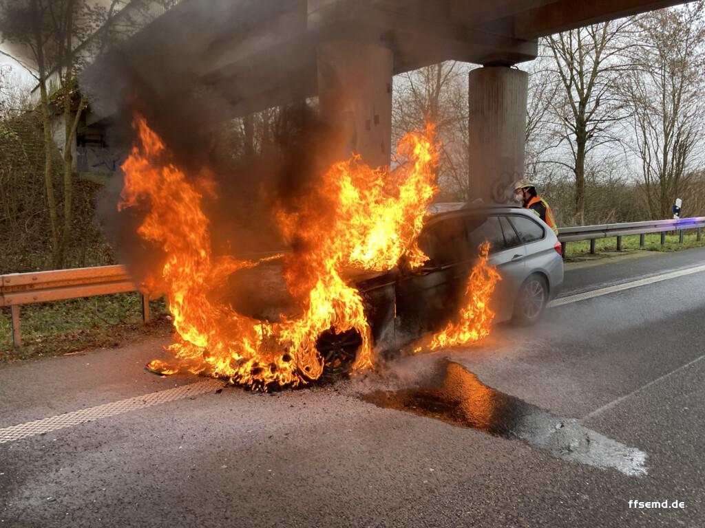 Ein PKW-Brand auf der Bundesstraße 45 zwischen Dieburg und Groß-Umstadt, führte am Morgen des 4. Advent zur Alarmierung der Feuerwehr Semd. Bereits auf Anfahrt veranlasste der Gruppenführer des ersten Fahrzeugs die Nachalarmierung der Feuerwehr Richen zu Verkehrsabsicherung und der Vorhaltung weiteren Löschwassers. Das Fahrzeug wurde zunächst mittels Wasser gekühlt und schlussendlich mit Schaummittel gelöscht. Anschließend nahm man Betriebsmittel auf, bevor Polizei und Straßenmeisterei die Einsatzstelle übernahmen.