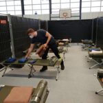 Am Mittwochnachmittag erreichte uns der telefonische Auftrag zur Unterstützung bei der Errichtung einer Notunterkunft für ankommende Kriegsflüchtlinge aus der Ukraine. Drei Kameraden der Semder Wehr machten sich bereits eine halbe Stunde später, zusammen mit weiteren Kameraden aus Wiebelsbach, auf den Weg.