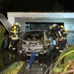 Am Mittwochabend kam es zum Brand eines Elektrofahrzeugs in einer Garage mit Verbindung zu einem Wohngebäude. Durch die ersteintreffenden Kräfte wurde die Garage mittels Rettungssäge geöffnet und die Brandbekämpfung eingeleitet. Im weiteren Verlauf rettete die Feuerwehr eine Katze aus dem verrauchten Obergeschoss, richtete einen Sammelplatz für Atemschutzgeräteträger ein, baute eine Riegelstellung vom Nachbargrundstück auf und belüftete das Gebäude. Der Abtransport des E-Fahrzeugs gestaltete sich schwierig, da die Batterie beim Einstellen der Löschmaßnahmen immer wieder aufflammte. Der Abtransport erfolgte schließlich, nach dem Herausziehen des Fahrzeugs aus der Garage mittels Seilwinde, in einem Löschsack und in Begleitung des Tanklöschfahrzeugs. Zur Eigentumssicherung war der THW Ortsverband Groß-Umstadt vor Ort. Die Fahrzeuge der Feuerwehr wurden bis spät in die Nacht wieder einsatzbereit gemacht.