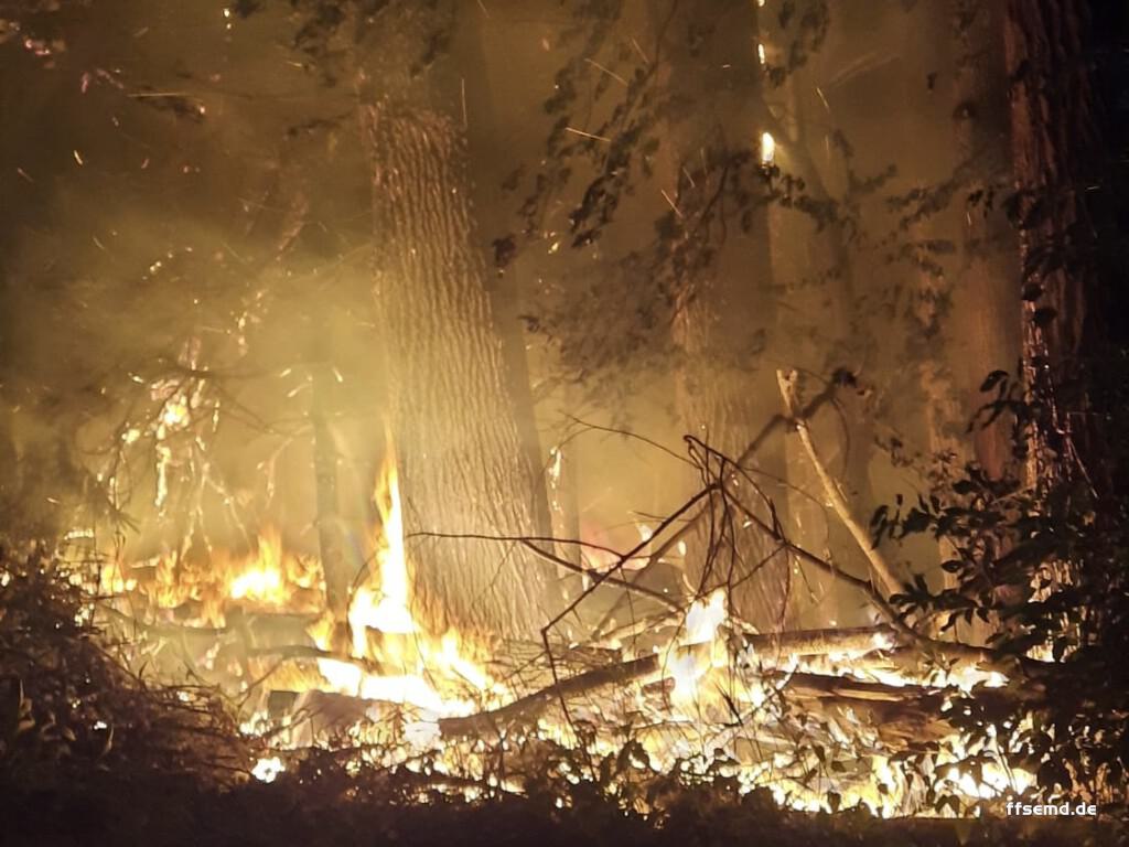 Am Samstagabend alarmierte die Leitstelle zu Feuerschein nach Blitzeinschlag im Pappelwald unweit des Amorbachhofs bei Richen. Auf Anfahrt der ersten Kräfte wurde die Lage bestätigt. Es brannten Bäume, ein Hochsitz und einige Quadratmeter Wald. Die Feuerwehren Richen und Semd bekämpften das Feuer von der einen Seite aus, die Feuerwehr Umstadt von der anderen. Im Verlauf mussten Bäume gefällt werden, um an die Glutnester zu gelangen. Erst um 2:00 Uhr waren alle Ausrüstungsgegenstände gereinigt und die Fahrzeuge wieder einsatzbereit.