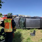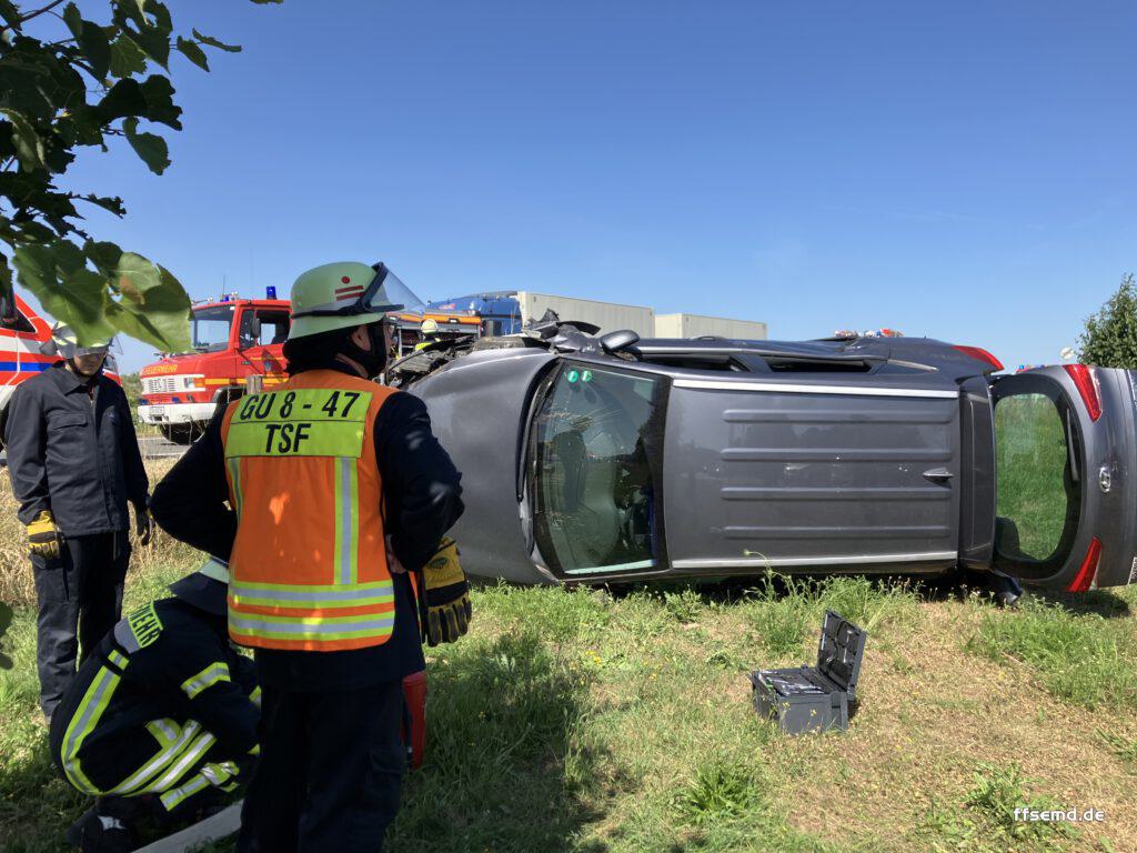 Am Mittwochvormittag kam es zu einem Verkehrsunfall auf der Bundesstraße 45 zwischen Semder Kreuz und der Georg-August-Zinn-Straße. Durch ein Ausweichmanöver landete ein Fahrzeug auf der Seite. Der verletzte Fahrer wurde vom Rettungsdienst versorgt und in eine nahegelegene Klinik transportiert. Die Feuerwehr sicherte die Einsatzstelle ab und stellte den Brandschutz bis zum Eintreffen des Abschleppdienstes sicher. Es traten keine Betriebsmittel aus. Zur Reparatur des defekten ASP-Zauns informierte die Leitstelle den zuständigen Dienstleister.